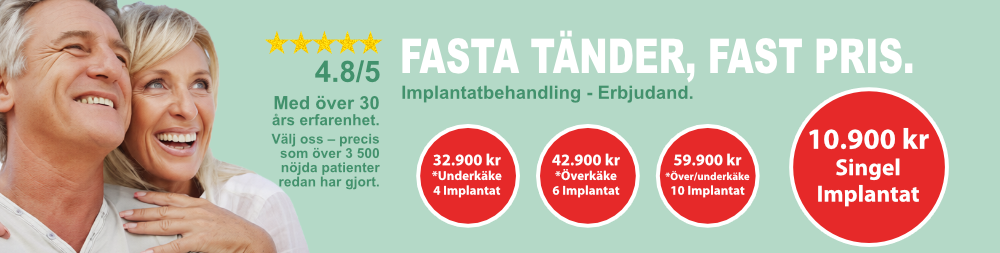 * Över- och underkäke– 10 implantat: 12,900 kr
